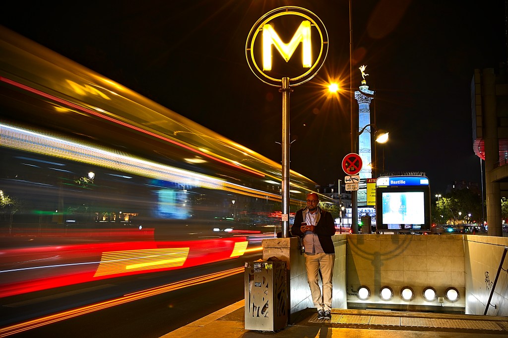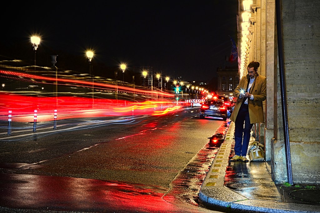 “Screen Focus” series is all about how much time (maybe too much time?) we spend on our mobile, and as a result we end up missing quite a bit of what’s happening around us. Here on these pictures the long exposure technique is producing lights trails representing the time flying by while the main character stays still “focussing” on a mobile phone.